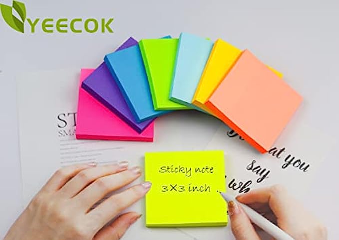 • ✅Super Sticky Notes: Strong adhesive, make sure sticky notes don't fall off, and removes cleanly as well. Sticky note is easy to recycle.