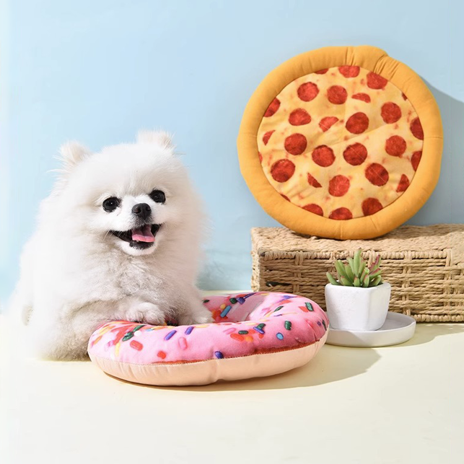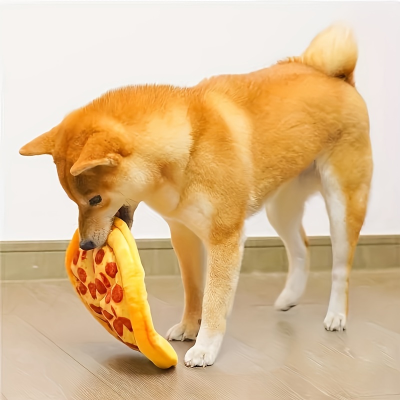 Quality:Acceptable Appearance:Cute Suitability:Medium to Big Dogs Item is in good condition, fast delivery. The pizxa toy ia cute and each slice of pizza has a squeaky sound, more suitable for big dog