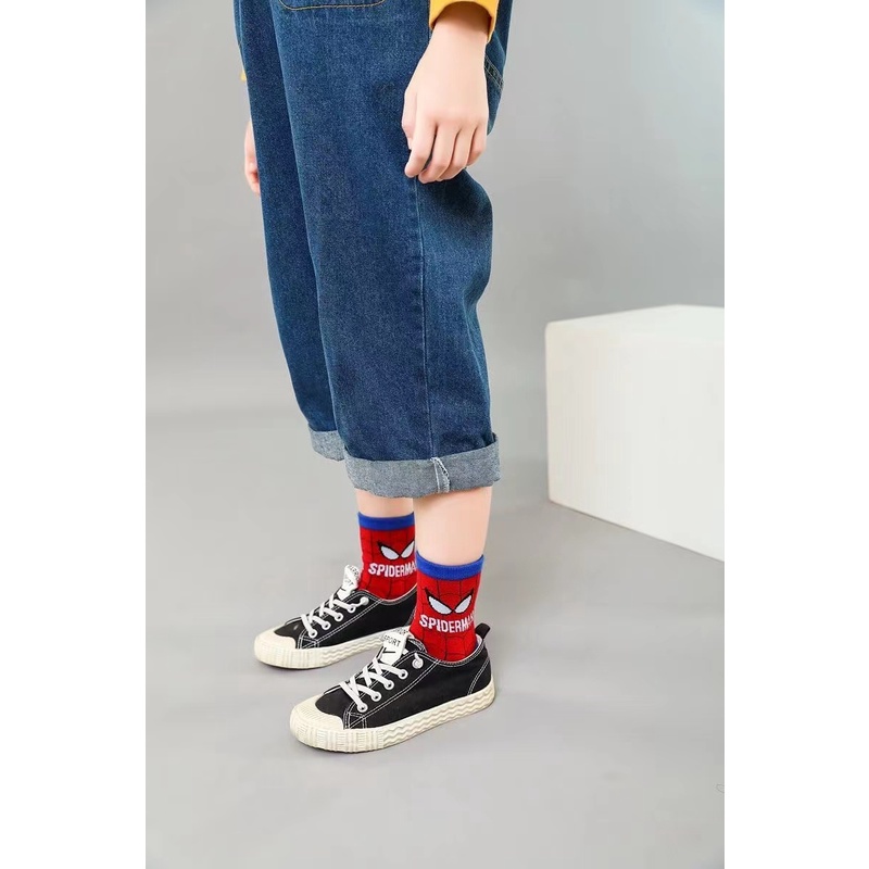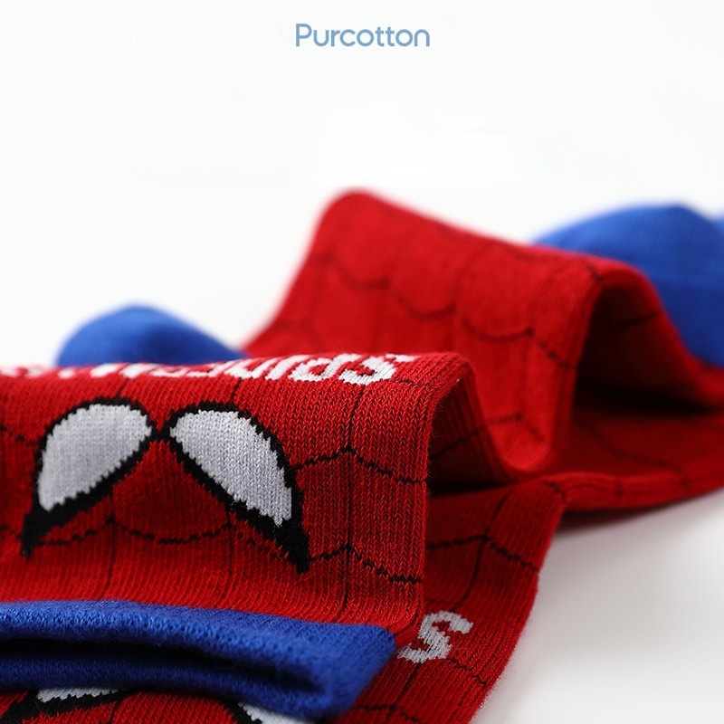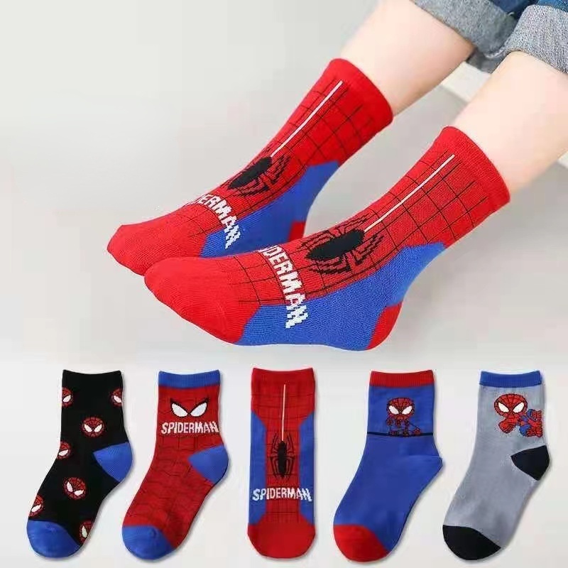 Material:Cotton Nice stockings. The Spiderman design is awesome and lovely for kids. Suits to my kid's size. Lovely colours and my kid loves it much!!!
