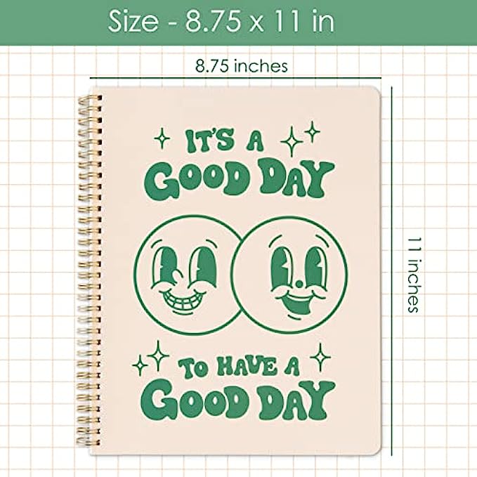 • Retro cover art - Write in style with our trendy cover art featuring a retro style happy face and an inspirational quote to start your day off with a positive vibe