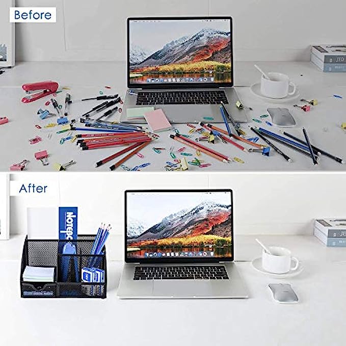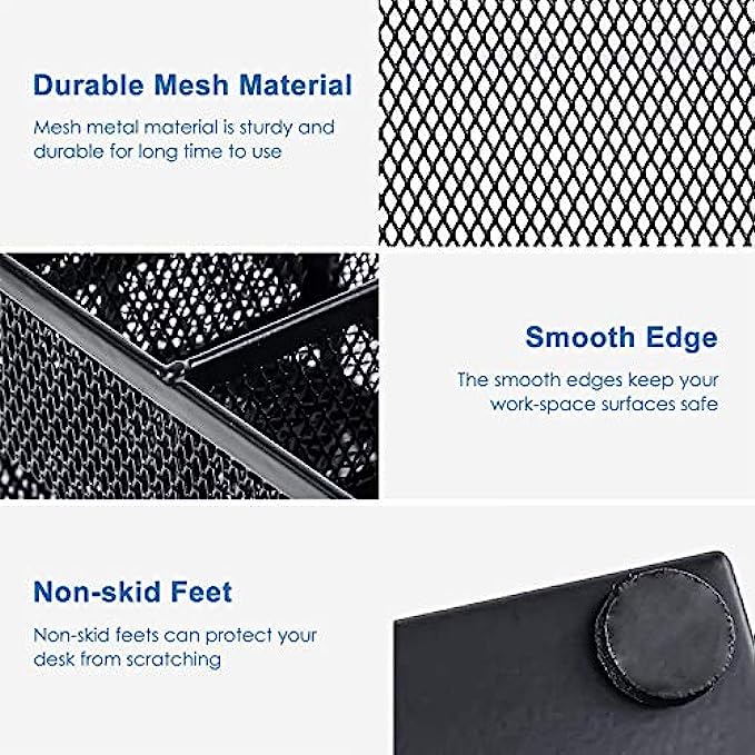 • ✏DESK ORGANIZER FOR ANYWHERE: Mesh desktop organizer is suitable for home, office, work, school, classroom, workshop, studio etc; Nice on desktop, school desk, bedroom dresser, coffee table, shelf, in a college dorm room, living room; This great organizer fit for wherever you need.