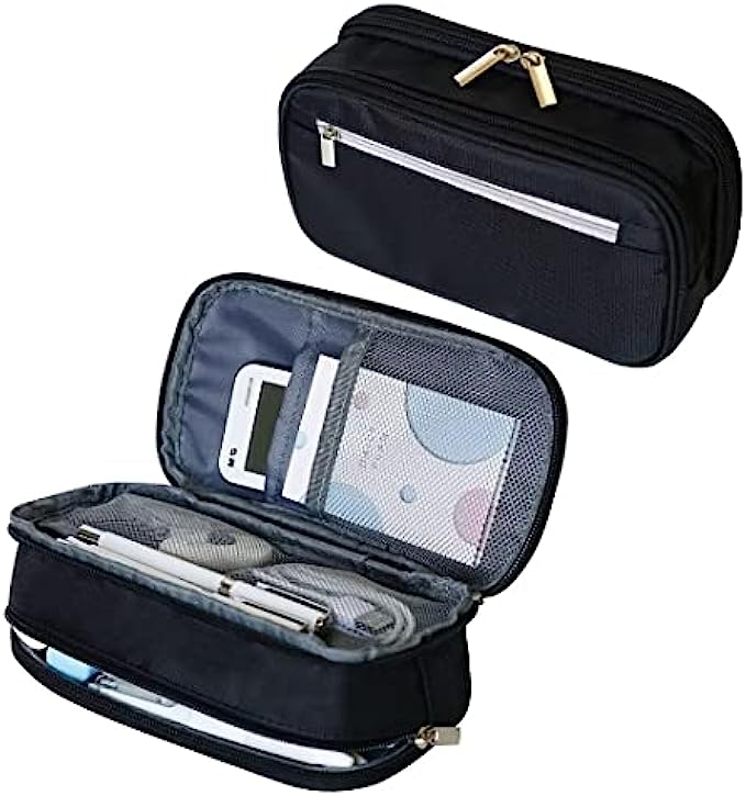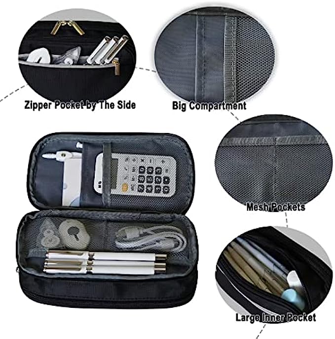 Unique Design: Large capacity space with 3 layer zipper design pencil pouch, classified storage, easy to organize. One side compartment have 4 roomy separately. The 2 built-in mesh compartments can keep important small notes, cards, and tickets in an easy-to-view built-in mesh compartment. And the other divide compartment can keep your frequently used pens in place and for quick access.