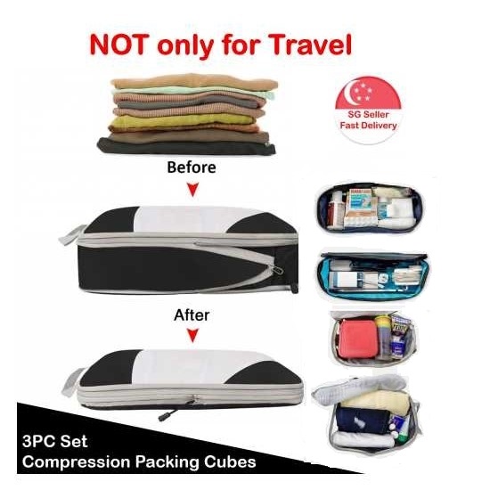 Quality:Good material Suitability:functional and useful Deliver was fast. Received items in good condition and within 2days. Nice colour. Zipper solid and smooth. Its helpful to organise my luggage...but not sure how much compression will help.