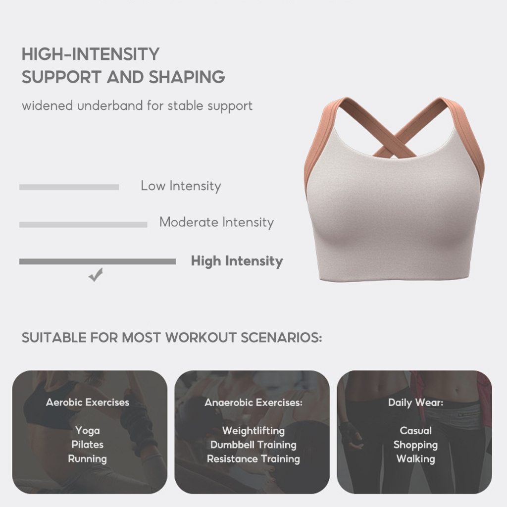 Quality:Soft Performance:High Support Appearance:Good The customer service attitude is excellent, always responsive to any questions. The recommended size fits perfectly. This sports bra is made of very soft, skin-friendly fabric, making it extremely comfortable to wear. It also has great breathability, ensuring it doesn’t get stuffy during workouts. The cups provide good coverage, lifting and preventing sagging without any gaps or shifting. The bra also offers excellent support, enhancing the shape of the bust and making it look great!