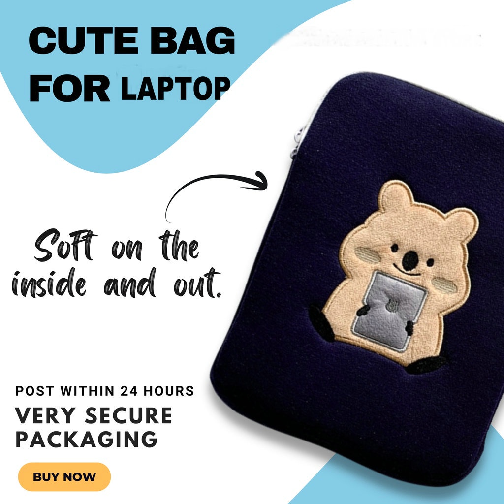 【THICKER】Cute Cartoon Embroidery Laptop Bag Tablet Bag 10/11/13/14/15/15.6 inch Tablet Pouch For Men Women