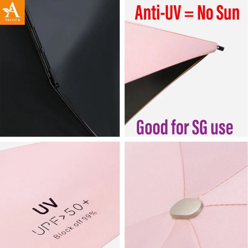 Appearance:Pretty pink! ? Performance:Seems decent Quality:Seems decent Brought this to replace my old compact umbrella. This seems to be flatter/skinner than my old one. Think it can only fit 1 pax, 2 if both of you are very skinny ? have yet to use em. Would preferred the cover to not have any wording haha ?
