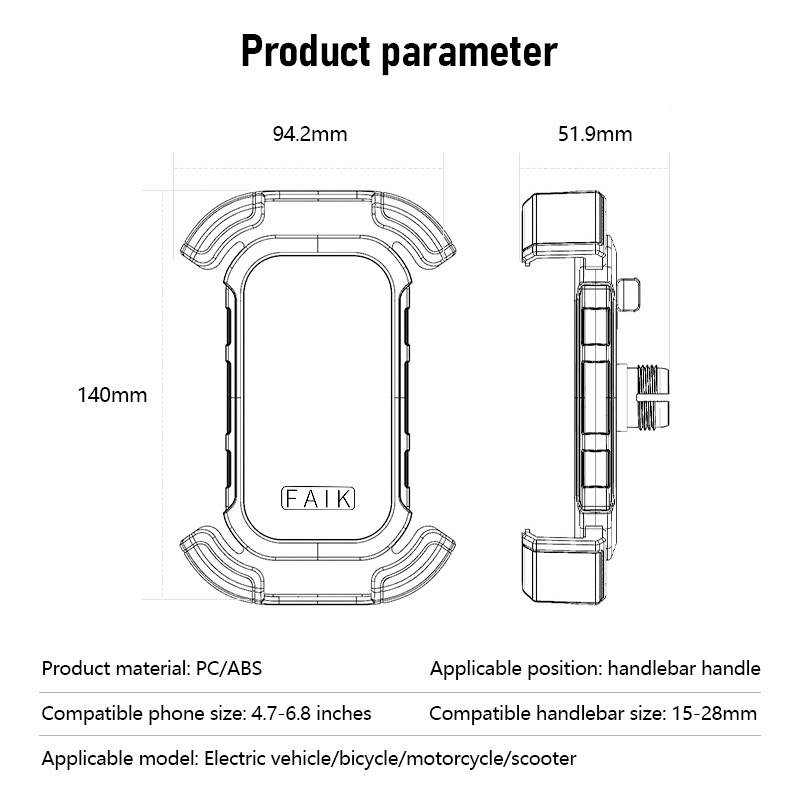 Quality:reasonably good for price Suitability:good Item received in good condition. Very easy to set up to handlebar of my escooter. Perfect for my phone and easy to remove from the holder. Overall good purchase.